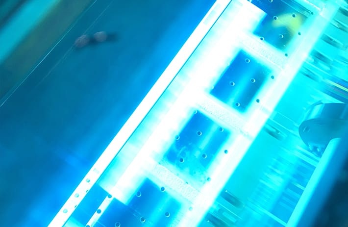 印刷できる東京オフ印刷の印刷機は、すべてUV印刷機です。油性印刷機は印刷面にパウダーを掛け、自然乾燥しなければなりませんが、UV印刷はUVランプを照射し、一瞬で乾かせることが大きな特徴です。油性印刷では印刷が難しいPPやユポ等の非吸収紙に印刷が可能です。パウダーを使用しないため、電子部品や食品関係など、不純物の混入を避ける必要のある印刷物にも最適です。また、印刷後、速乾のためすぐに加工に入ることができるので、納期の短縮にも繋がります。