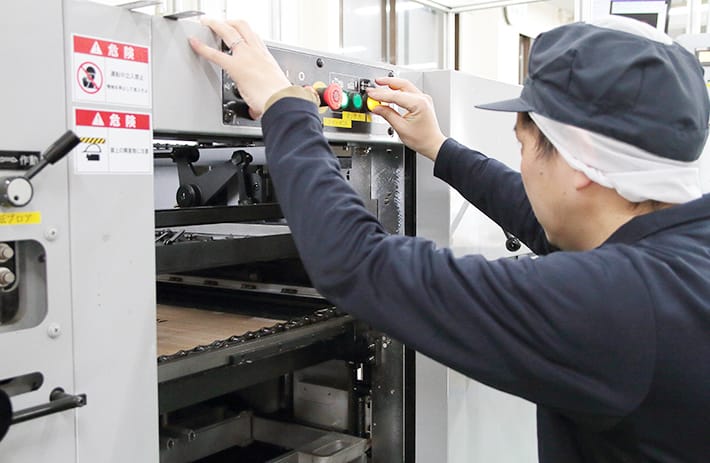 用途に合わせた機械選び東京オフ印刷では、抜きの機械だけでも3台あります。 抜き加工では、形状を細かく、用紙を特殊に、サイズを小さく、紙粉はついてはいけない、ツナギはついてはいけない、スジは弱く押したいなど、さまざまなご要望をいただきます。東京オフ印刷ではどのようなご要望にもお応えできるよう、全自動の打ち抜き機と手差しの打ち抜き機、ブッシュ抜き機という特徴の異なる3台の機械を用途・数量に応じて使い分け、最適な方法で加工いたします。 抜きの圧や刃の調整など、職人の技術でお客様のご要望をカタチにします。